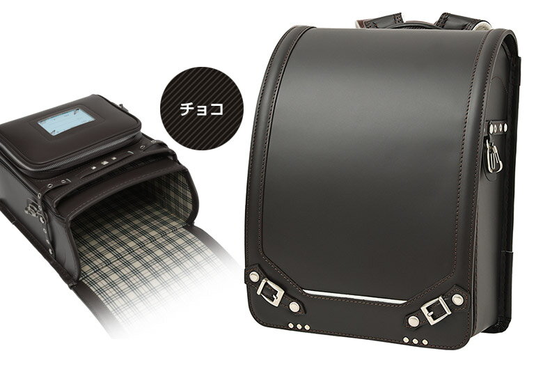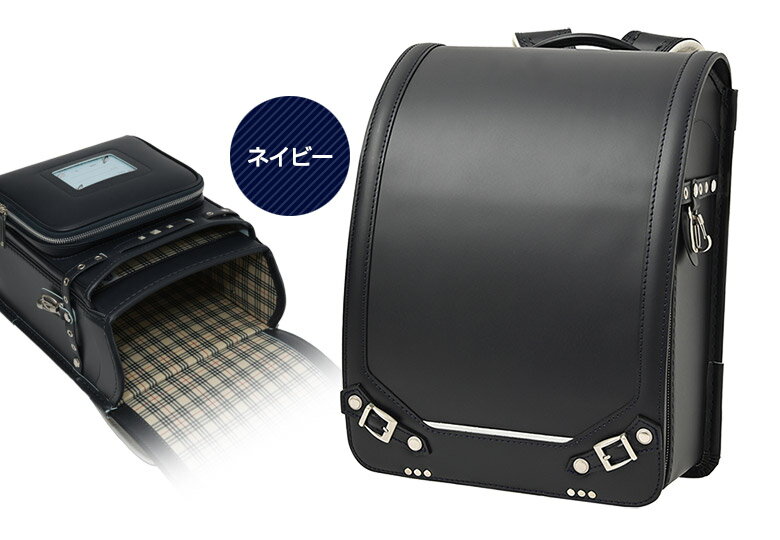 素材 牛ヌメ調 前部分 新ラウンドファスナーポケット、ササマチ付き、ポケット内側Dカン付き(コイルストラップ付き) 背・肩バンド裏 牛アイス カブセ裏 タータンチェック柄、ファイル式時間割りいれ カブセ表 飾りバックル2個、六角カシメ4個打ち、小カシメ6個打ち、スパークライト縫込み 内装 タータンチェック、芯材タフテル 背・マチ形状 背中250×310mm、持ち手付き、反射テープ縫込み 胸バンド アイレット12個打ち、スタッズ小2個、大1個打ち、6角カシメ4個打ち 肩バンド フリメカアップ機能付き背カン、5つ目手縫い、左肩Dカン反射鋲打ち 錠前 パールメッキ、ワンタッチワイド錠 重量 約1,300g 内寸 約、縦30cm×横22,5cm×11.5cm 外寸 約、縦31cm×横25cm×11.5cm カラー ブラック、ネイビー、チョコ、カーキ、キャメル