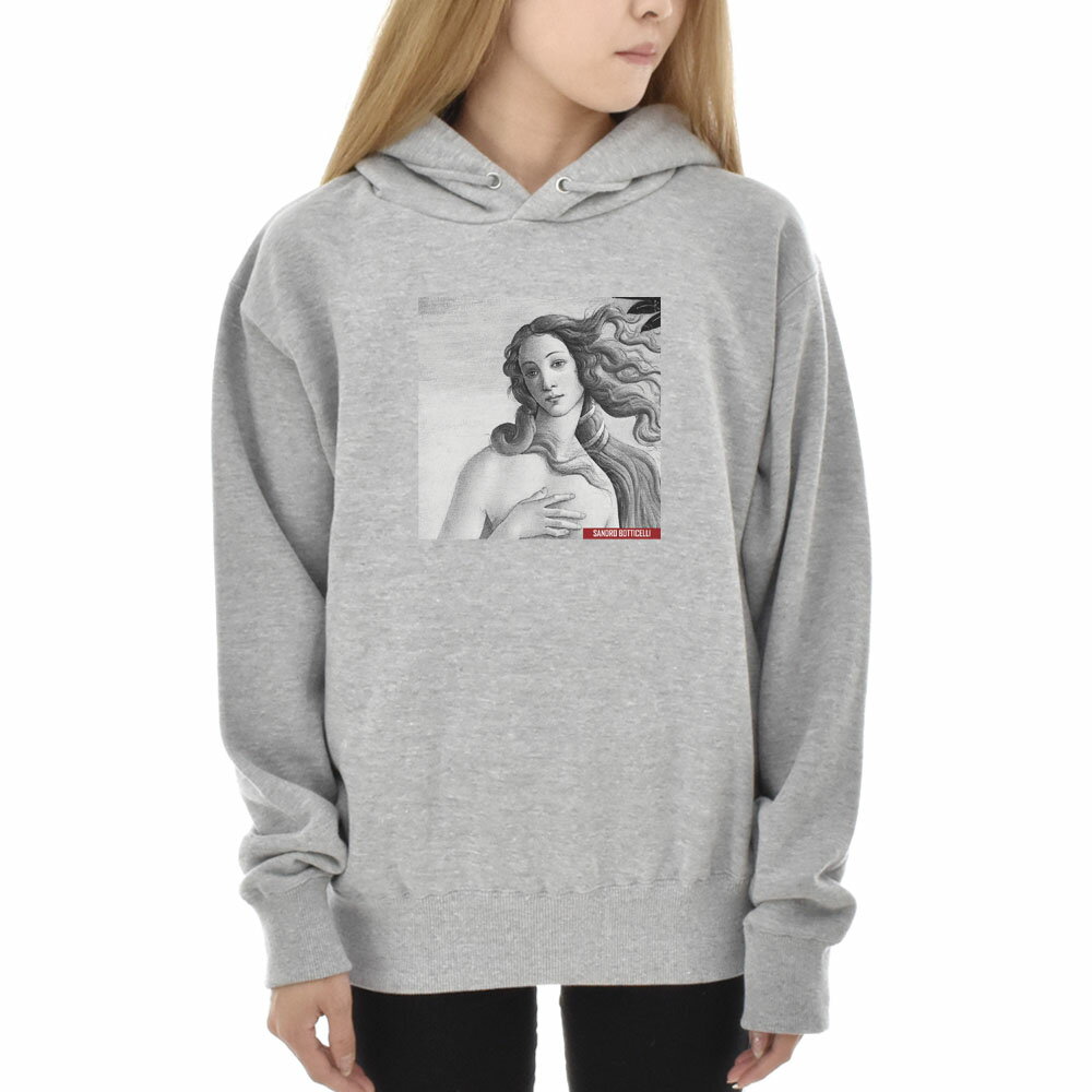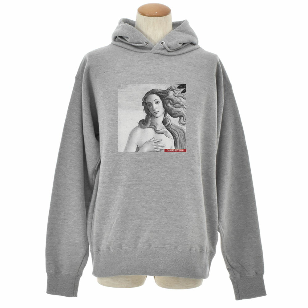 【アートパーカー】サンドロ・ボッティチェッリ パーカー ヴィーナスの誕生 ビーナス フォーカス モノクロ Life is ART ライフ イズ アート スウェットパーカー スエットパーカー メンズ レディース 大きいサイズ ビック 絵画 名画 S M L XL XXL グレー 灰 ブランド