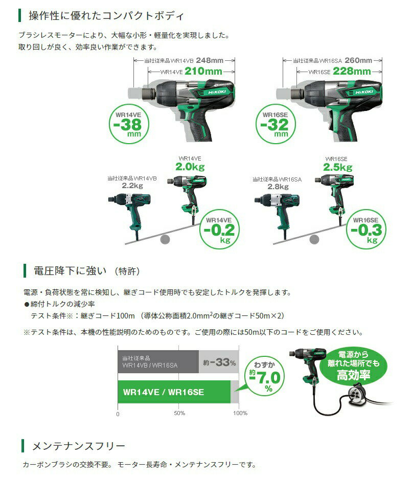■電圧降下に強い (特許) 電源・負荷状態を常に検知し、継ぎコード使用時でも安定したトルクを発揮します。